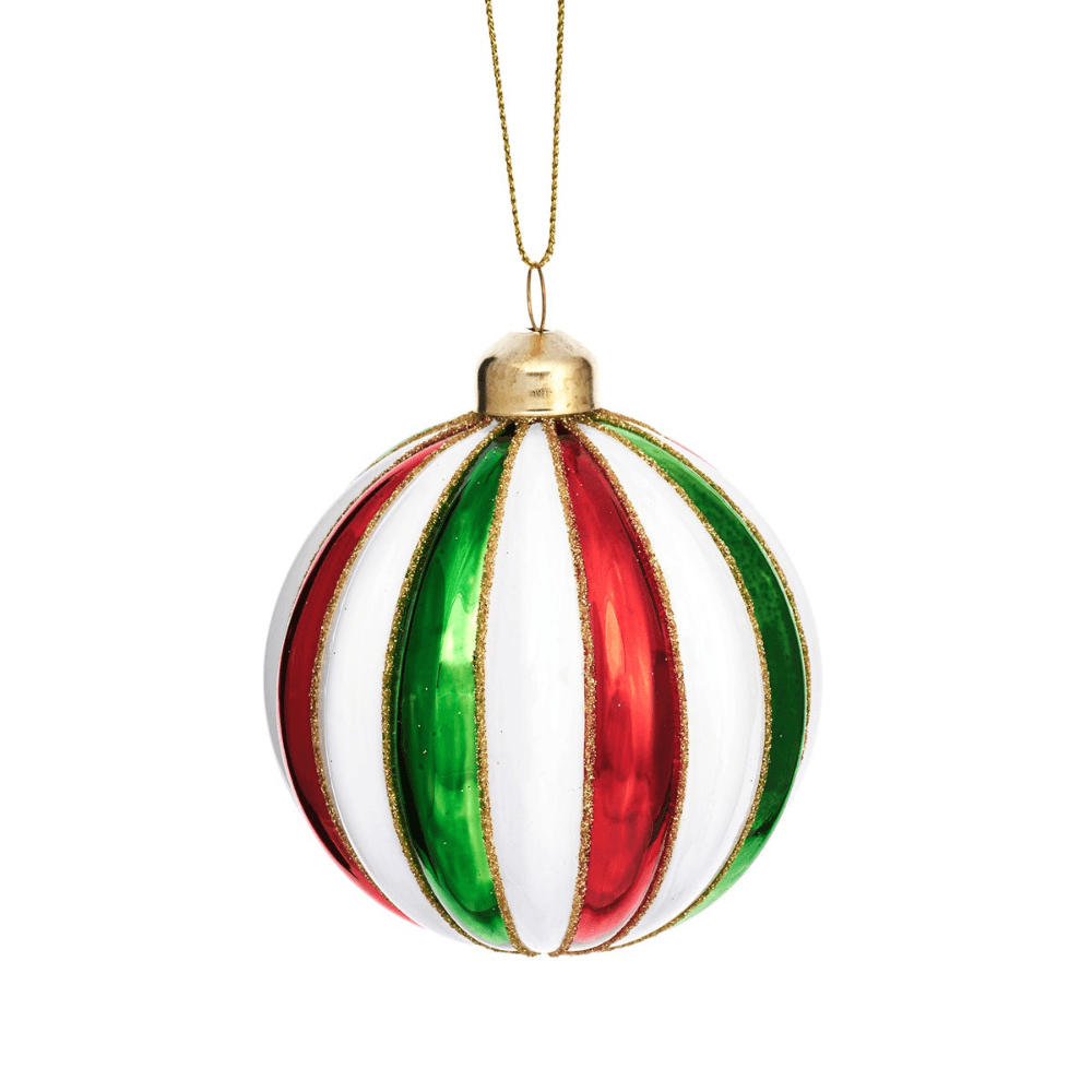 Boule de Noël en verre rayée rouge, verte et blanche | Twicy Store