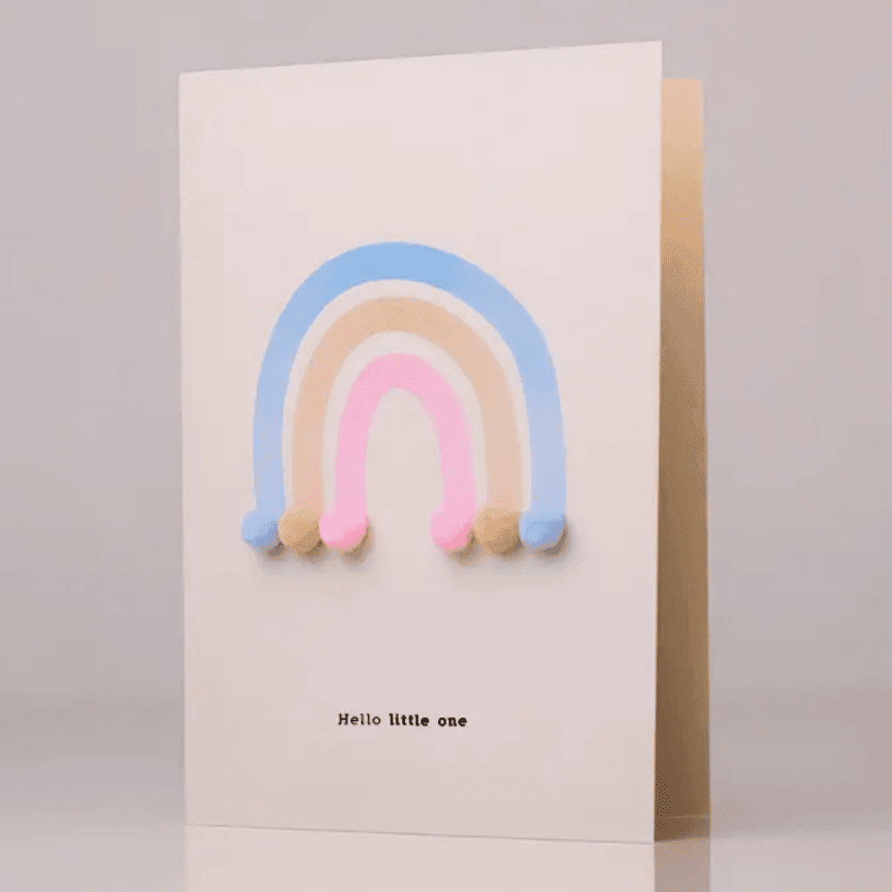 Carte « Hello Little One » arc-en-ciel et pompons | Twicy Store