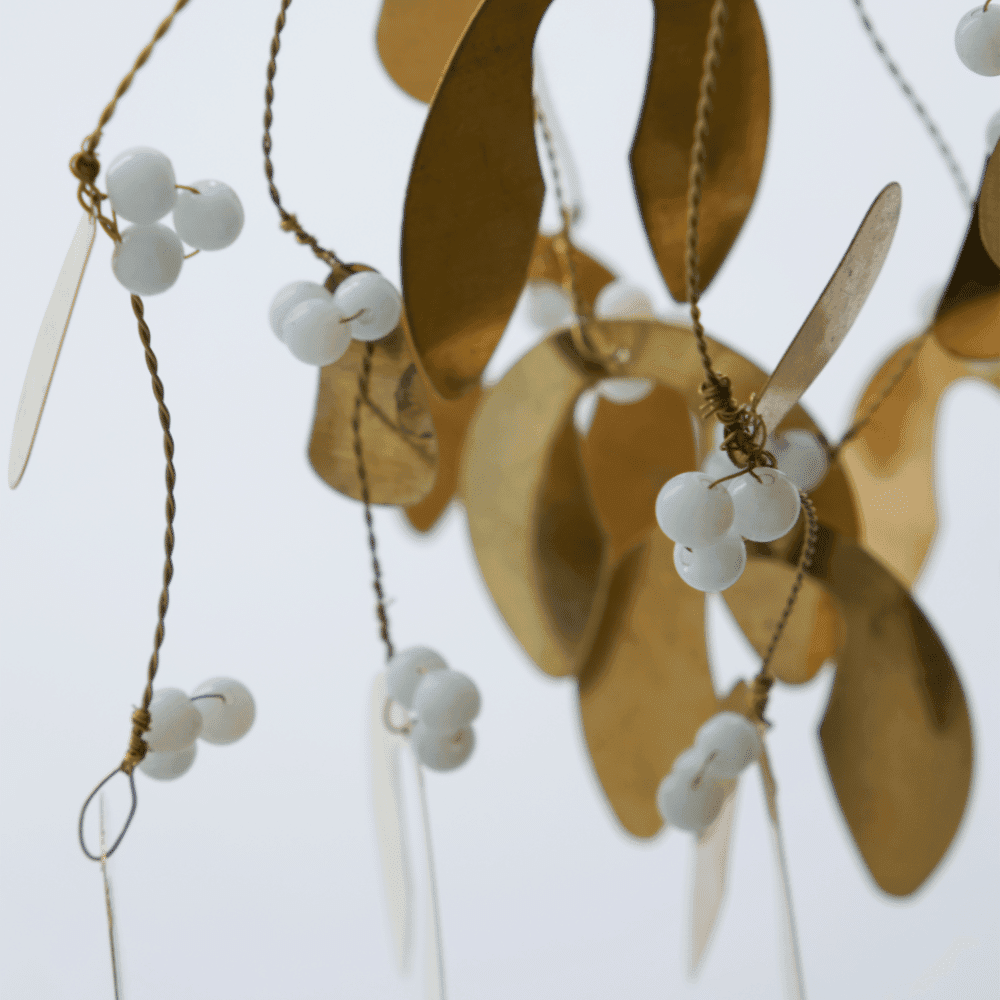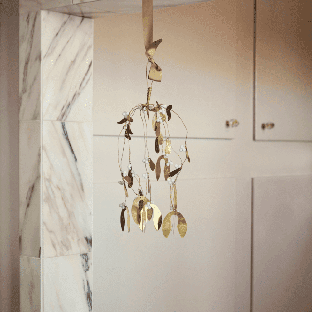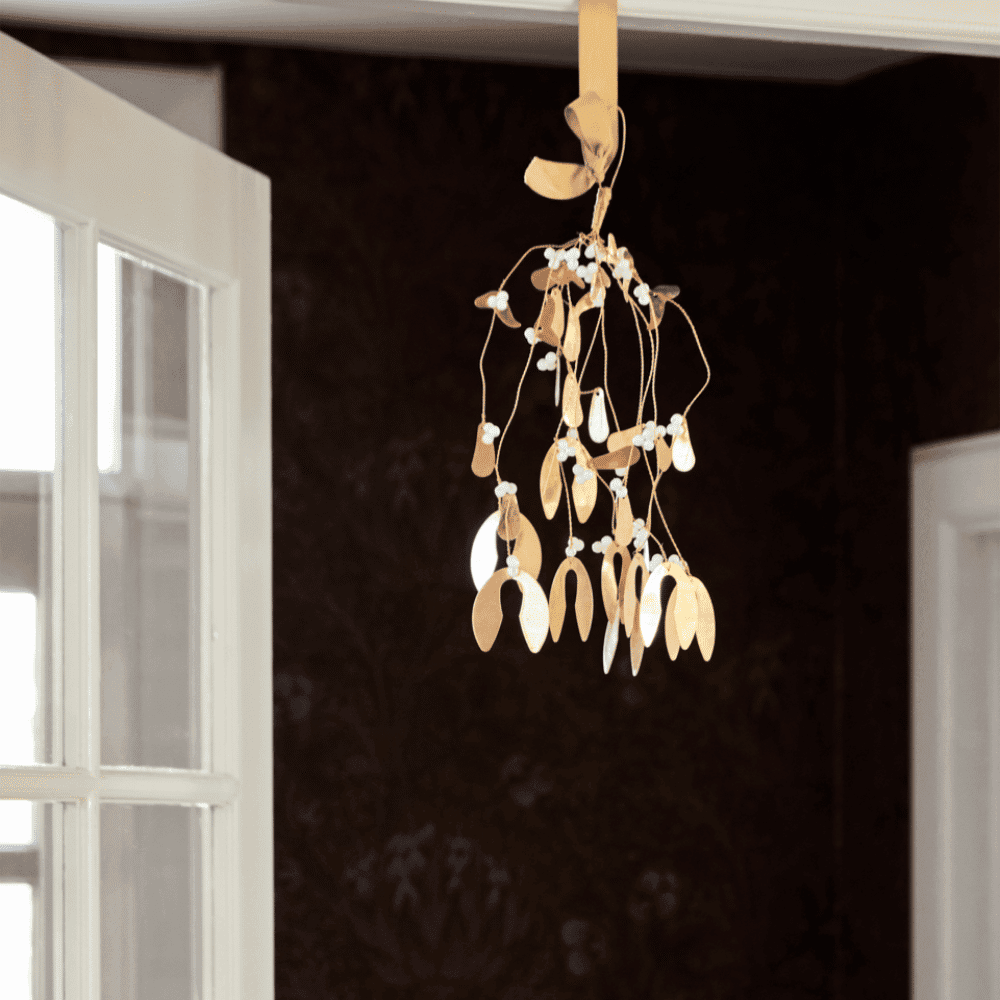 Fabriqué à la main en métal, cet ornement délicat évoque la légèreté des feuilles de gui, symbole de convivialité et de fête, et s’adapte à tous les styles de décoration.