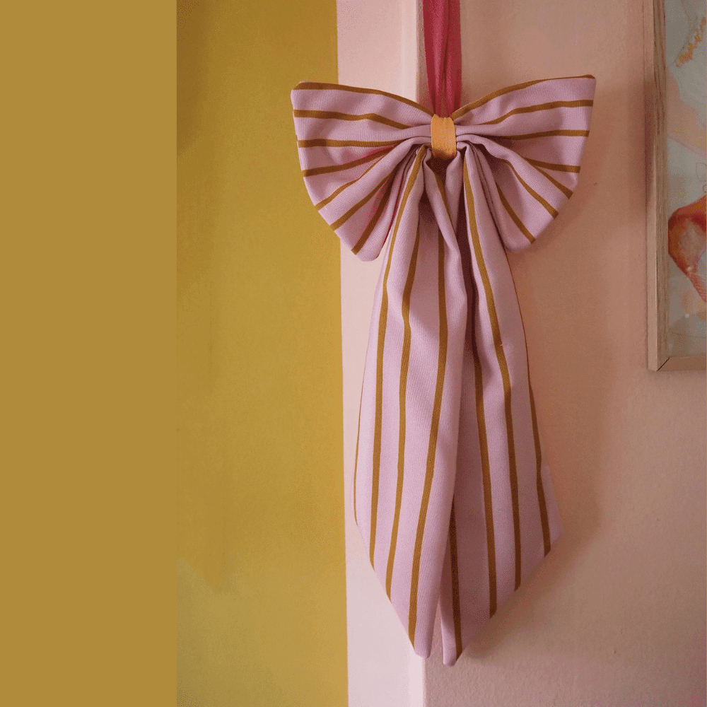 Nœud décoratif en tissu rose à rayures caramel– La touche dopamine déco qui illumine votre intérieur