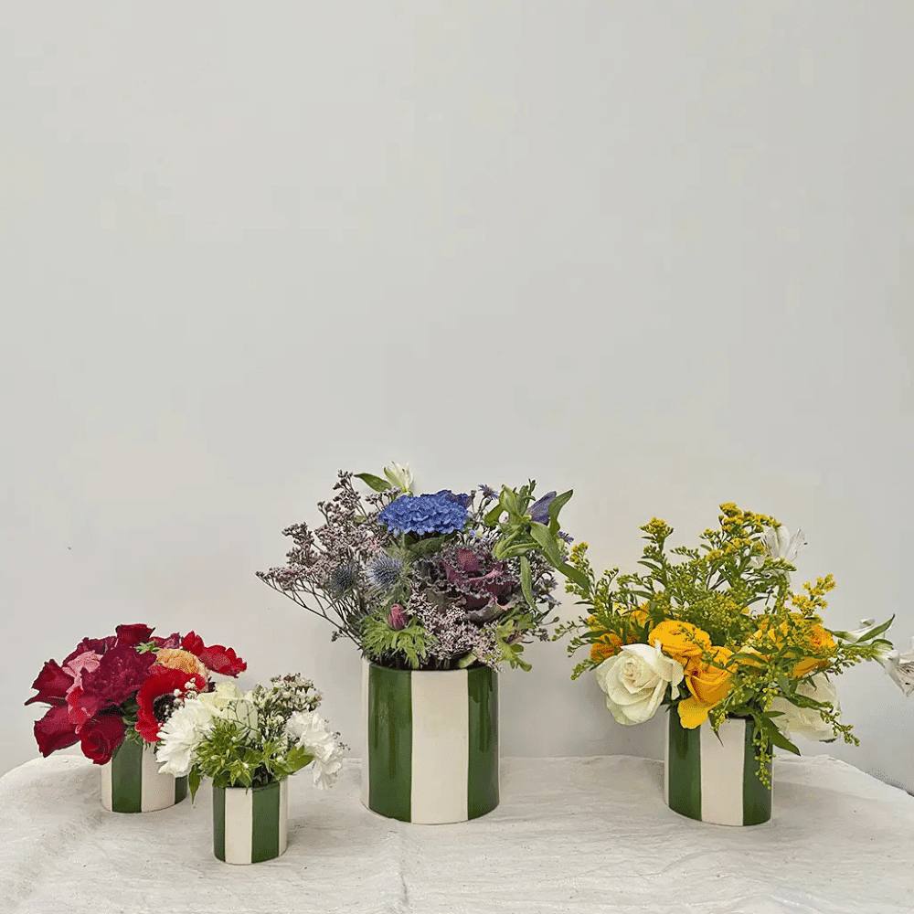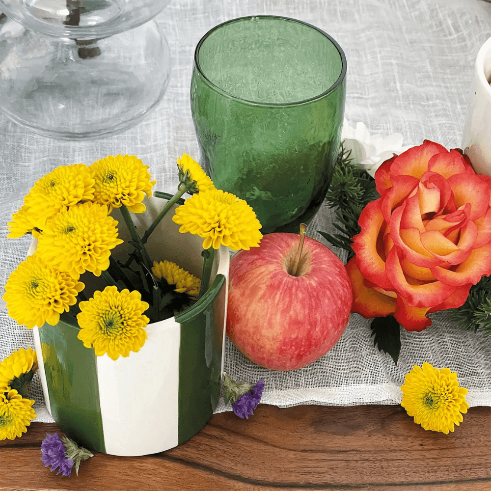 Set de 4 pots rayures vertes – Cache-pots en céramique | Twicy Store